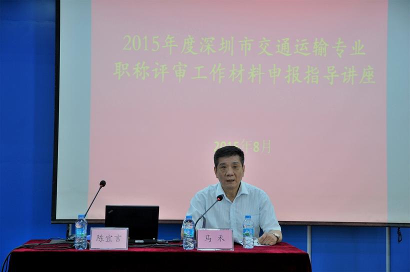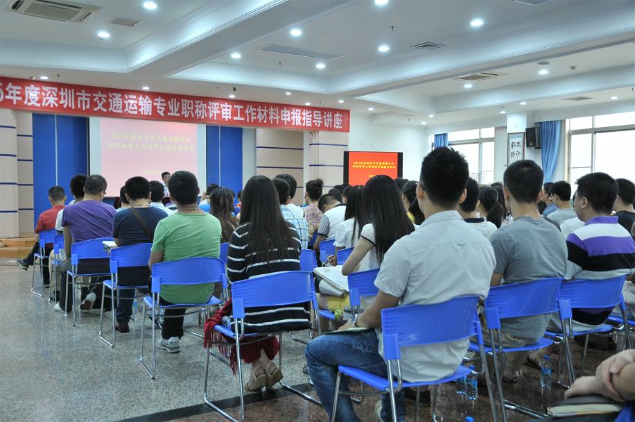 2015年8月30日下午,“2015年度深圳市交通運輸專(zhuan) 業(ye) 職稱評審工作材料申報指導講座”在市政設計大廈七樓多功能廳召開。講座由深圳市城市交通協會(hui) 與(yu) 我司聯合主辦,目的是為(wei) 幫助參加2015年度交通運輸專(zhuan) 業(ye) 職稱評審的技術人員全麵地了解職稱工作政策,明確申報方向,提高申報材料質量和通過率。講座由該協會(hui) 副秘書(shu) 長馬禾主持,我司陳宜言董事長主講,業(ye) 內(nei) 160多名專(zhuan) 業(ye) 技術人員參加。