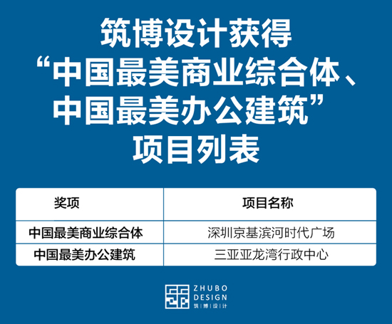 在這次活動中,築博設計分別獲得中國最美商業(ye) 綜合體(ti) 、中國最美辦公建築。