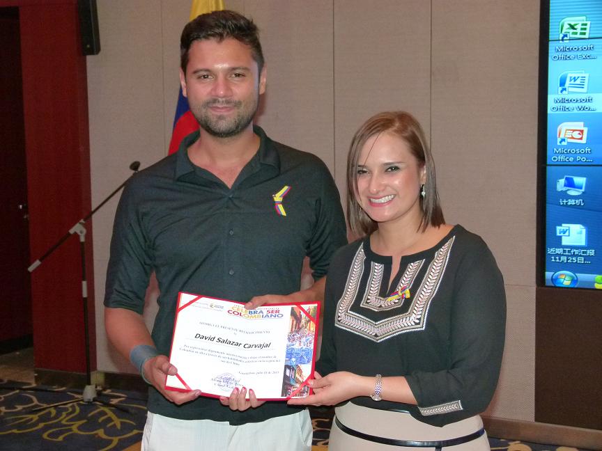 David獲哥倫(lun) 比亞(ya) 駐廣州領事頒發“藝術類哥倫(lun) 比亞(ya) 人傑出工作獎”。