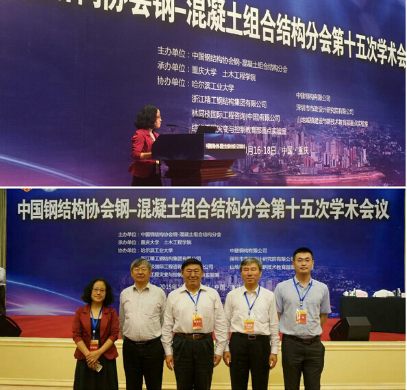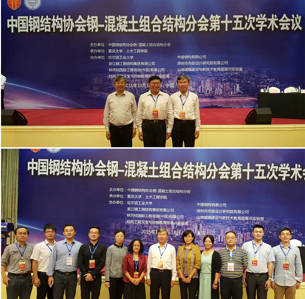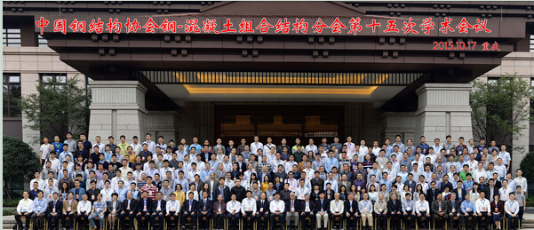 2015年10月16日至18日,中國鋼結構協會(hui) 鋼—混凝土組合結構分會(hui) 第十五次學術會(hui) 議在重慶召開,此次會(hui) 議由中國鋼結構協會(hui) 鋼—混凝土組合結構分會(hui) 主辦,重慶大學土木工程學院承辦,哈爾濱工業(ye) 大學等七家單位協辦,來自國內(nei) 外高校、科研院所、設計與(yu) 生產(chan) 企業(ye) 的350餘(yu) 名代表出席了會(hui) 議。我司作為(wei) 協辦單位之一,陳宜言董事長作為(wei) 組織委員會(hui) 副主任帶領相關(guan) 技術人員12人參加了會(hui) 議,其中研發中心薑瑞娟主任代表我司作了題為(wei) 《波形鋼腹板組合箱梁橋設計與(yu) 應用》的主題報告。