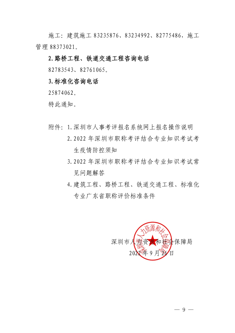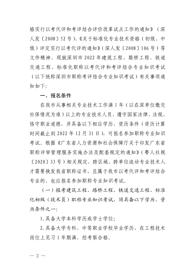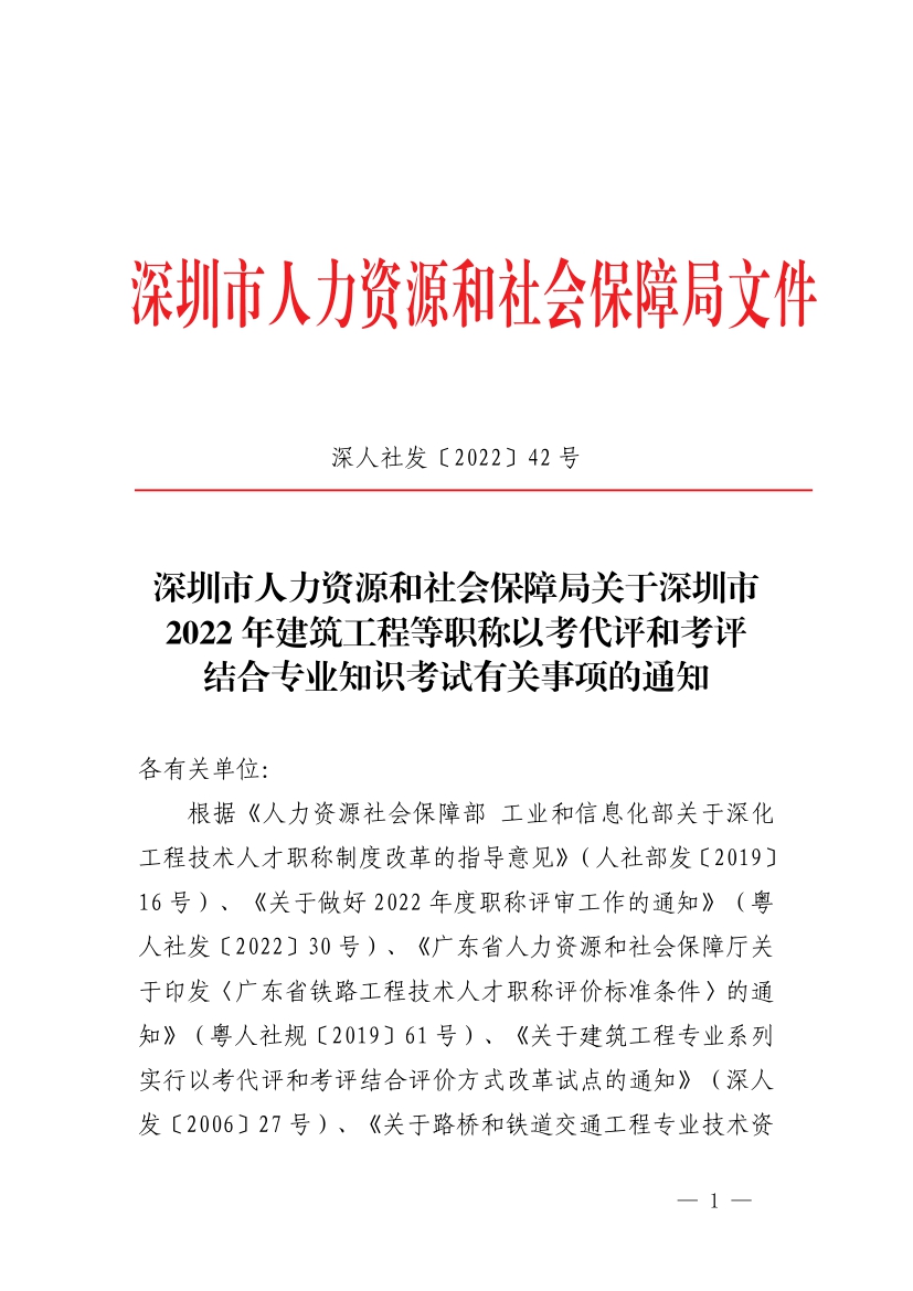 深圳市人力資源和社會保障局關於深圳市2022年建築工深圳市人力資源和社會保障局關於深圳市2022年建築工程等職稱以考代評和考評結合專業知識考試有關事項的通知