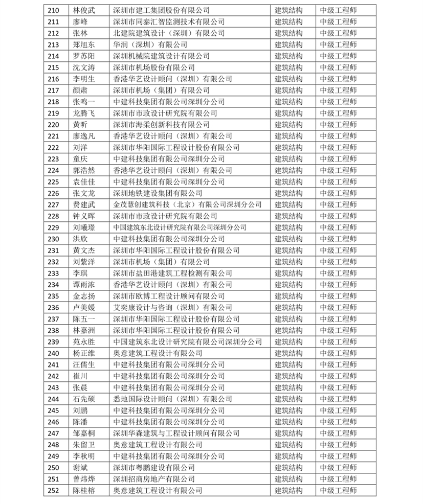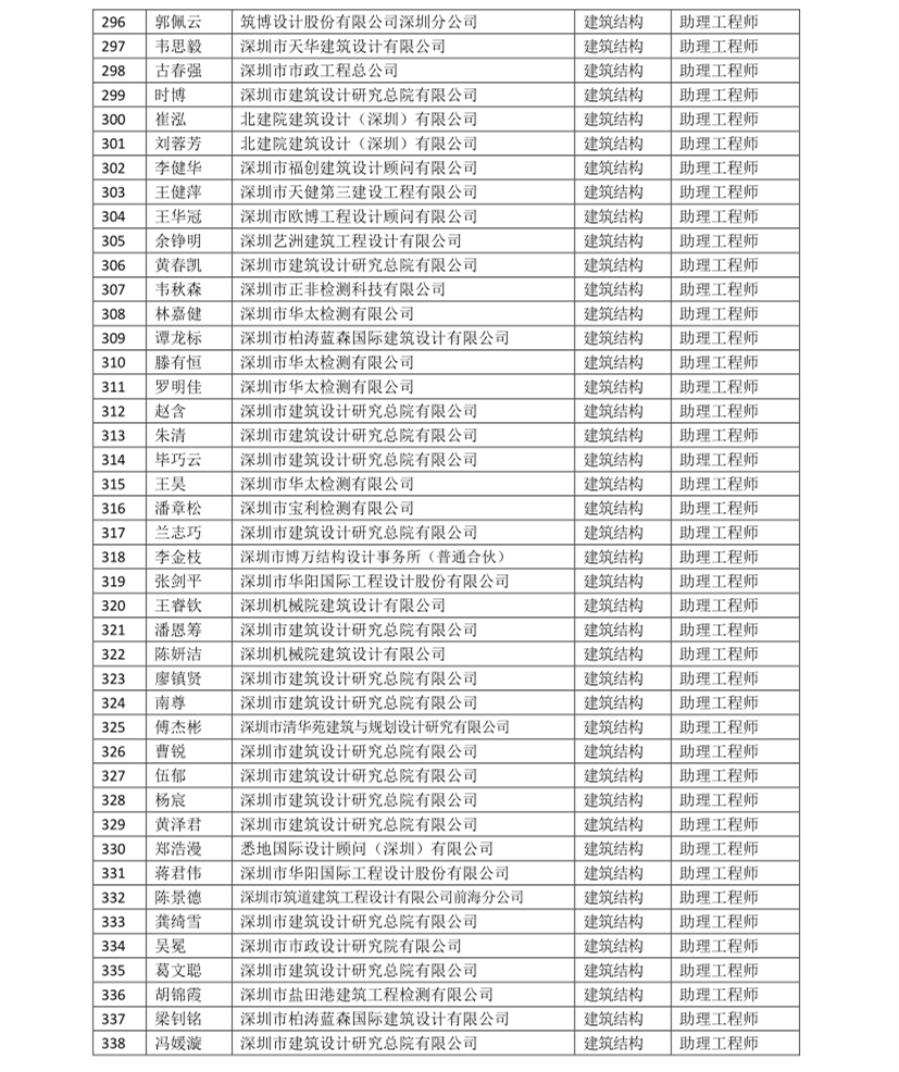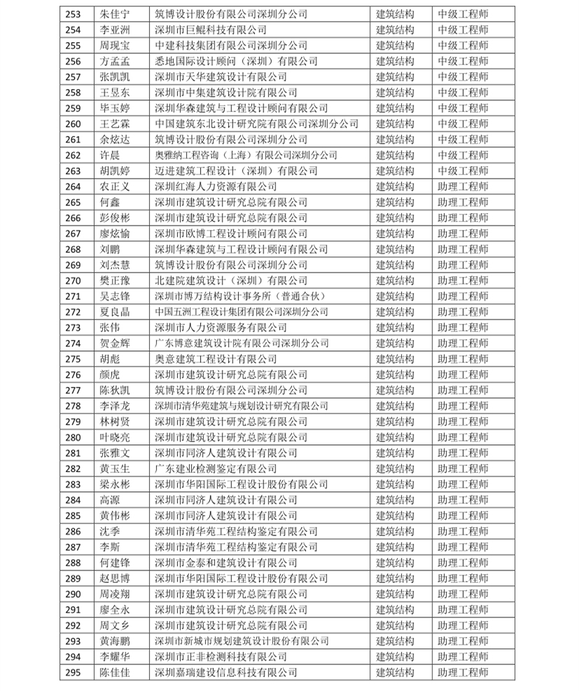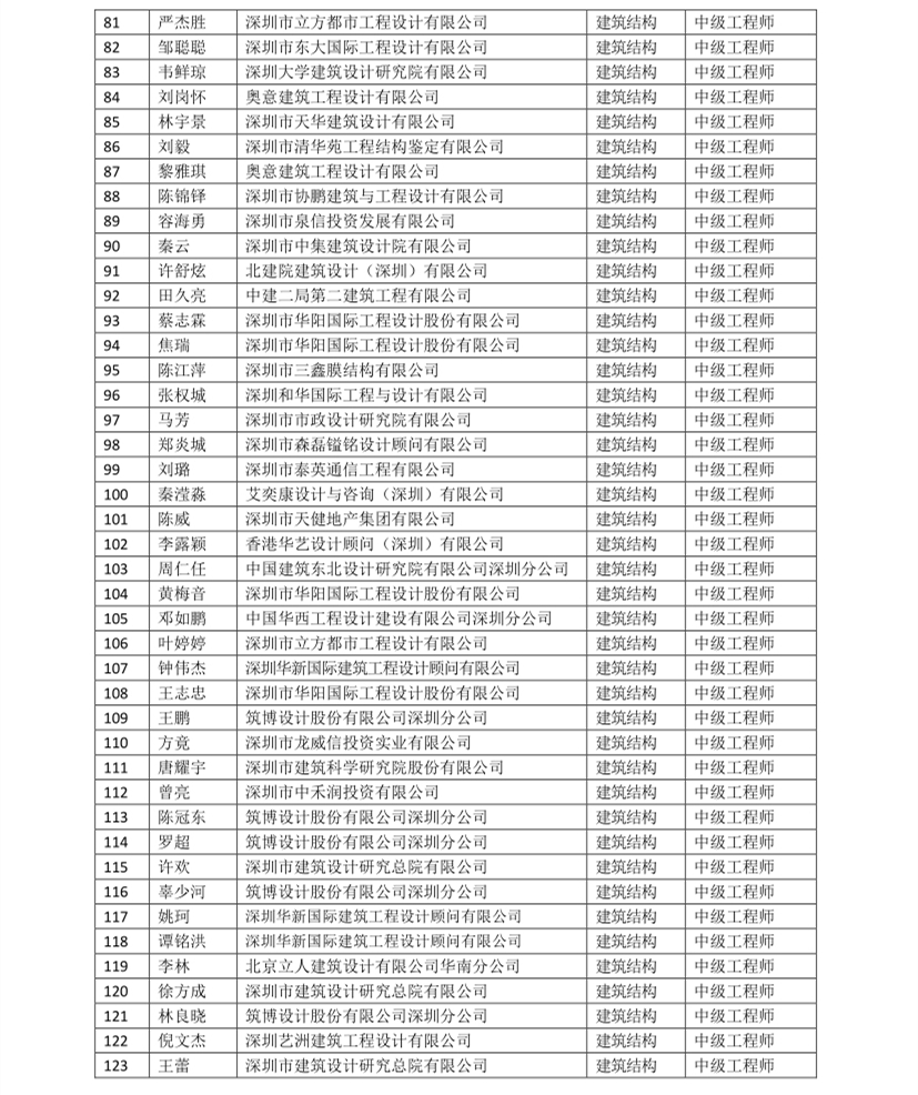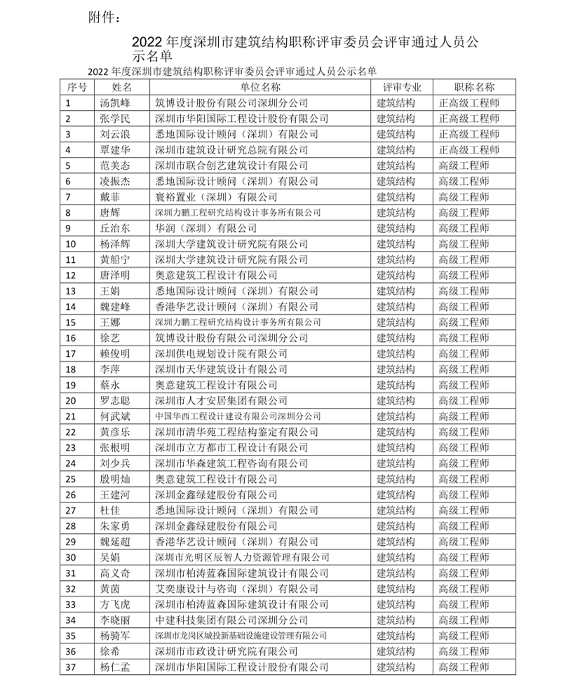 附件:2022年度深圳市建築結構職稱評審委員會(hui) 評審通過人員公示名單