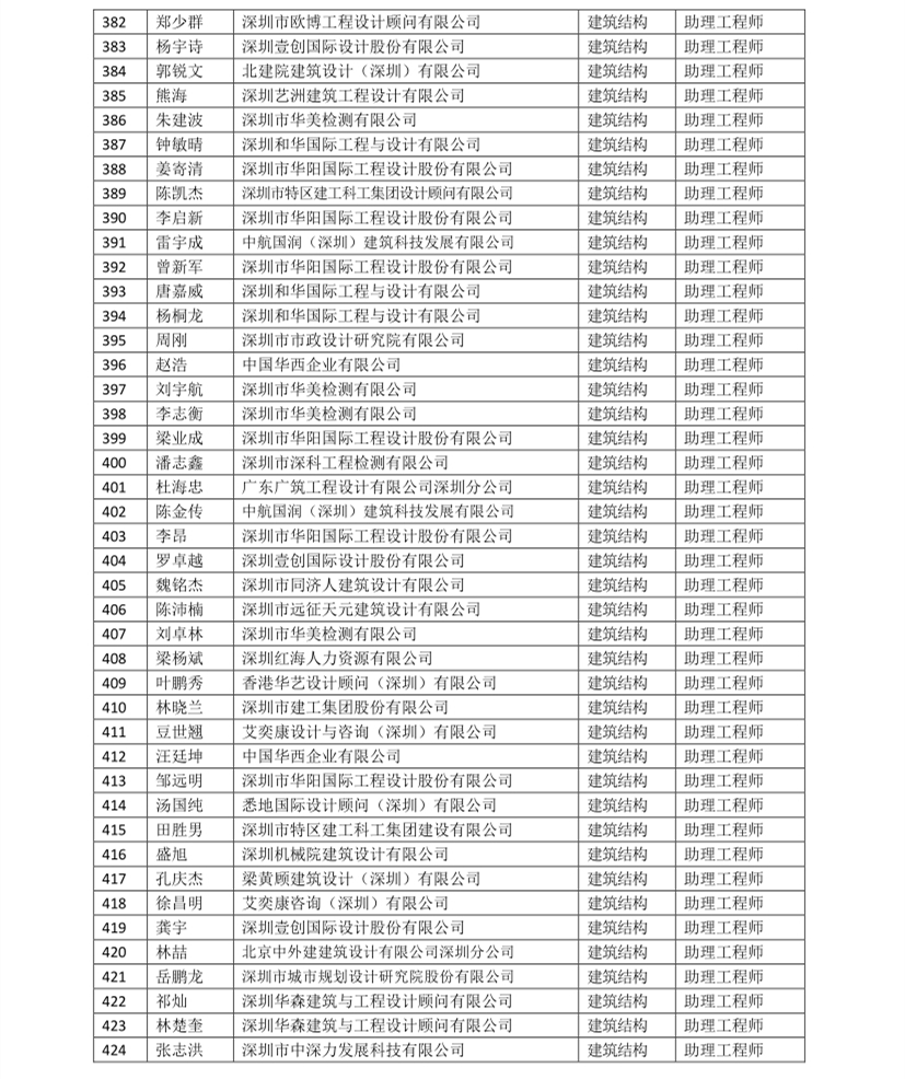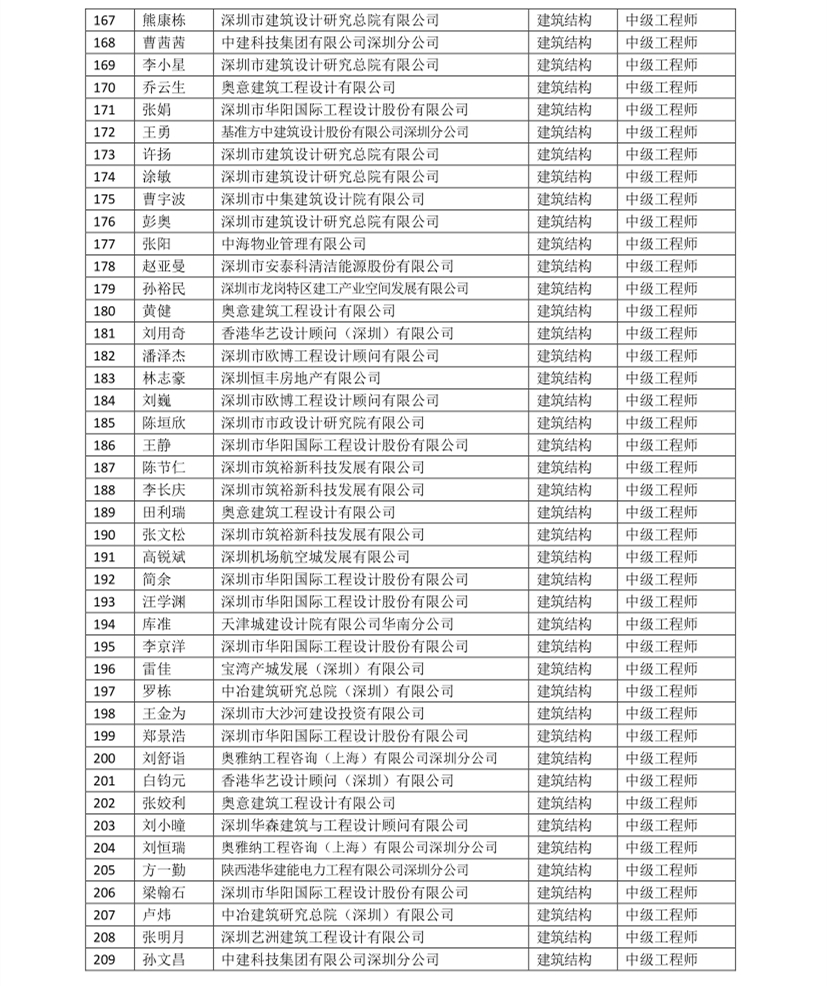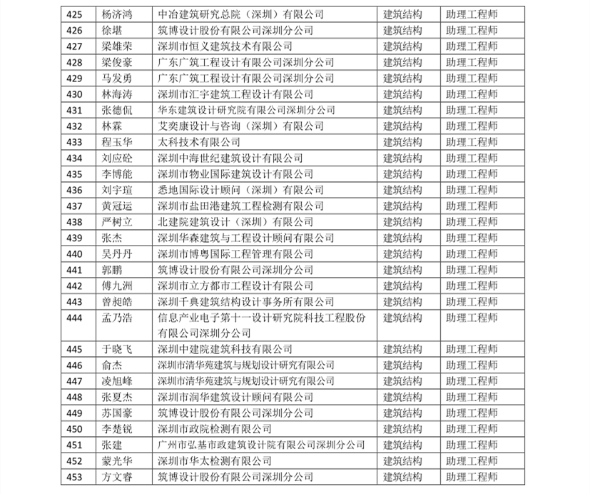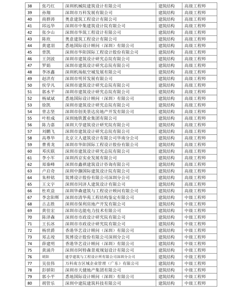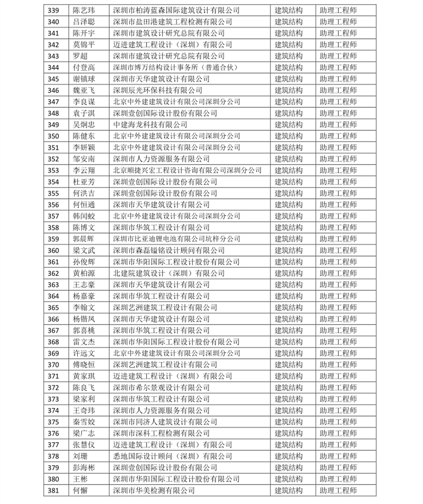 附件:2022年度深圳市建築結構職稱評審委員會(hui) 評審通過人員公示名單
